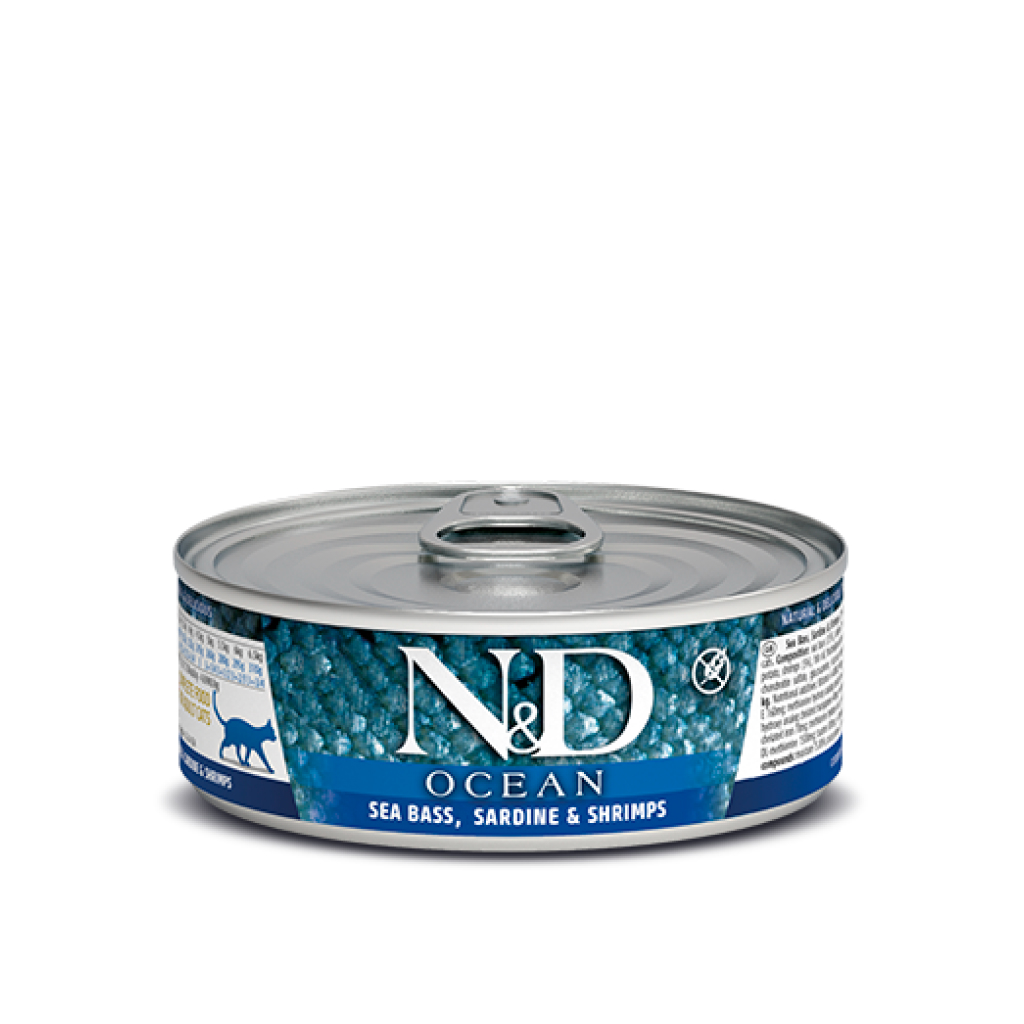 N&D Ocean Cat Sea Bass, Sardine & Shrimp Recipe is formulated to meet the nutritional levels established by the AAFCO Cat Food Nutrient Profiles for maintenance. 100% Satisfaction Guaranteed.