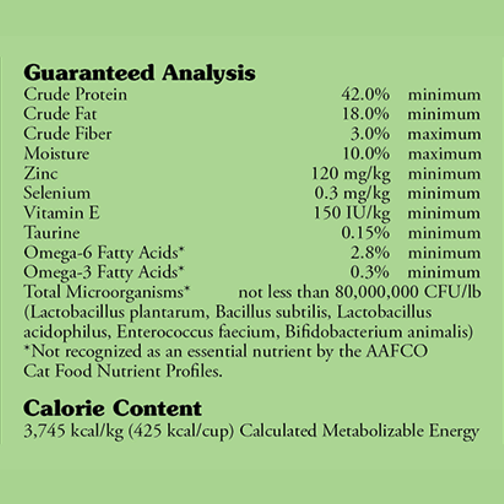 With 42% protein, this recipe is packed with highly digestible energy for cats of all ages. The unique combination of roasted venison and smoked salmon provide your cat with the proper protein, vital to a lean and healthy body, while legumes, vegetables, fruits and carefully selected ingredients provide them with the balanced nutrition nature intended.
