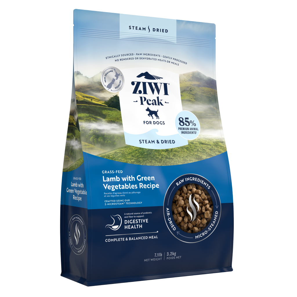 Crafted from ethically-sourced raw lamb from New Zealand's green pastures with a blend of spinach, kale, green beans, and chicory root to support digestive health. Delicately micro-steamed then gently air-dried via our innovative two-step Z-MicroSteamâ„¢ technology to ensure optimum nourishment and palatability.